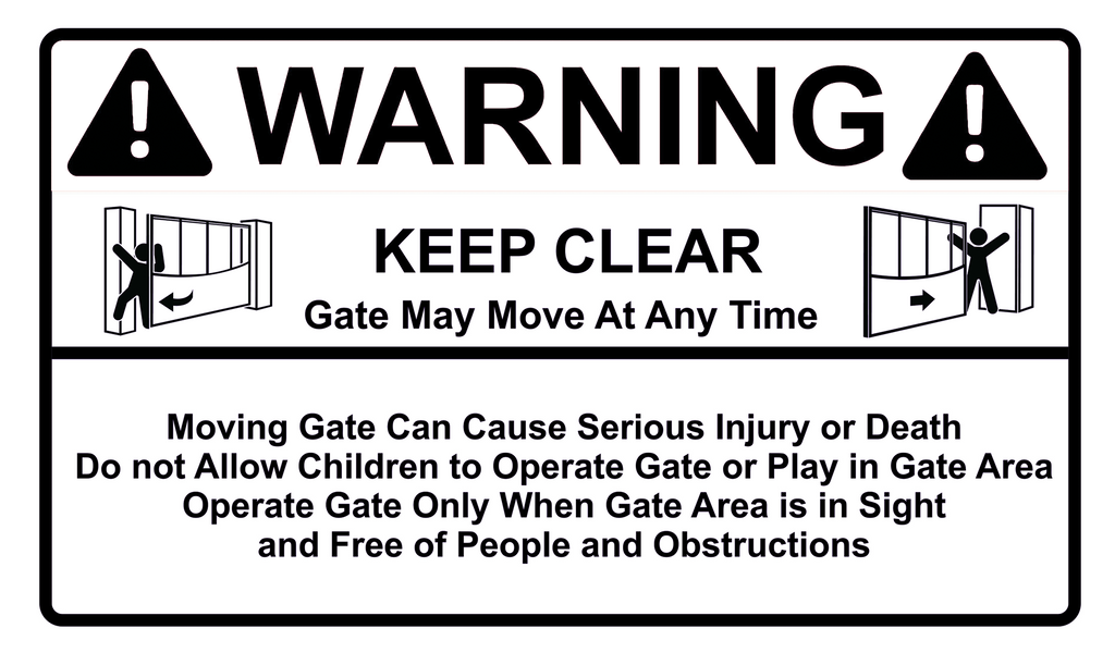300 mm x 175 mm UV printed sign: "Warning Keep Clear Gate May Move At Any Time" with customisable options
