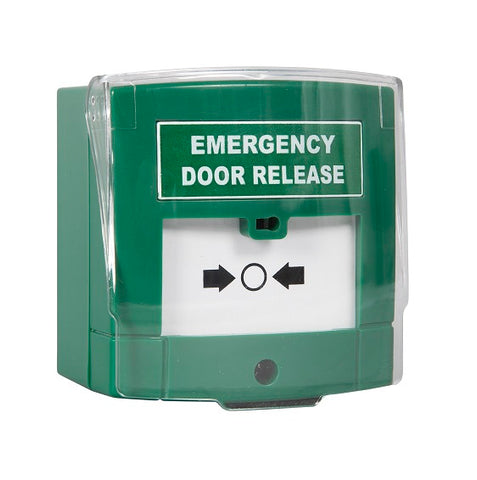 The single pole, fully-resettable green emergency door release unit has an easy-to-clean surface and plastic cover which can be flipped up for operation.
